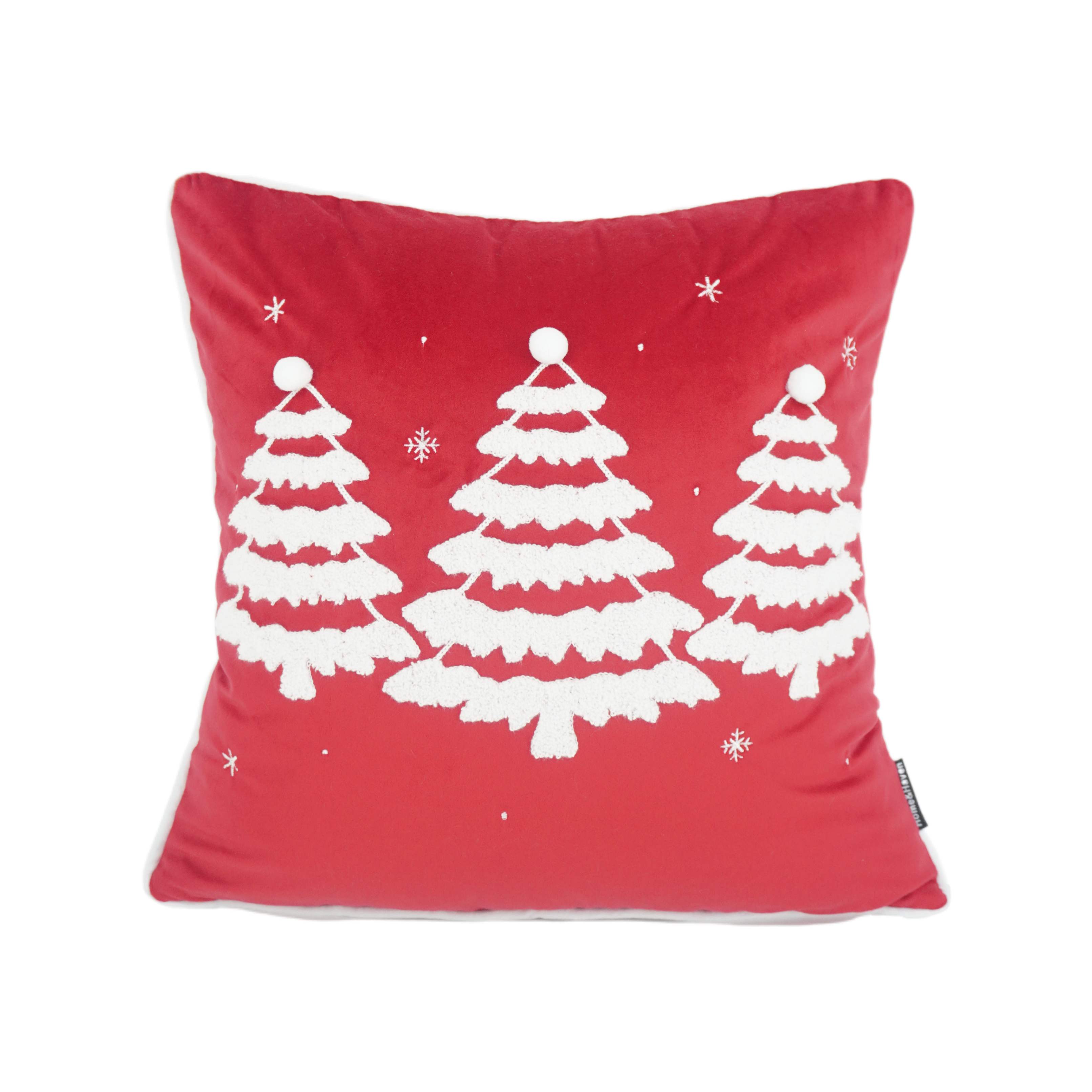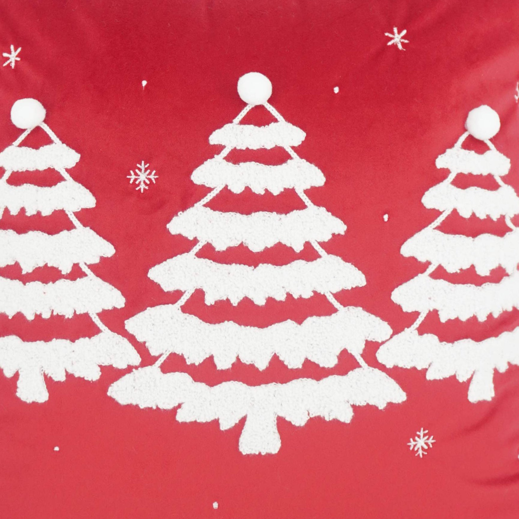 • Red Christmas Trees Embroidered Cushion Cover with pompons